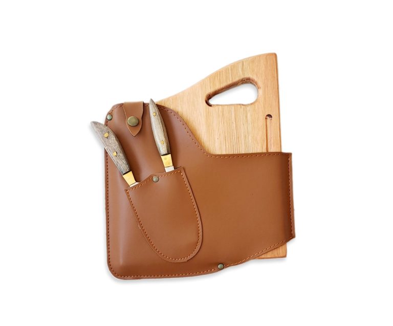 Porta Tablita Asado X2 Eco Cuero Caramelo Con Plancheta Y Provoletera
