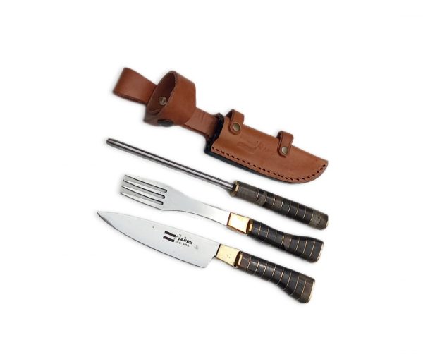 Juegos de Cuchillo, Tenedor y Chaira Anillado Combinado