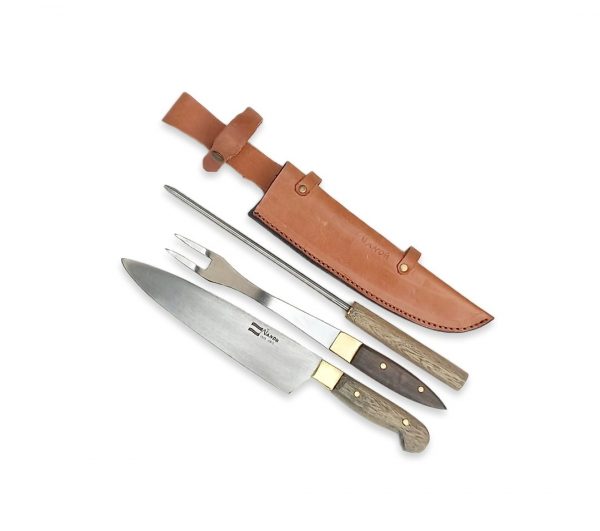 Juegos de Cuchilla, Tenedor dos puntas y Chaira de acero inoxidable 420