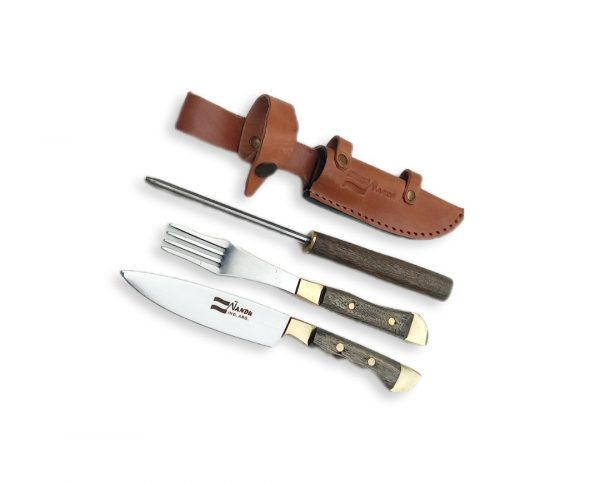 Juegos de Cuchillo, Tenedor y Chaira de acero inoxidable 420