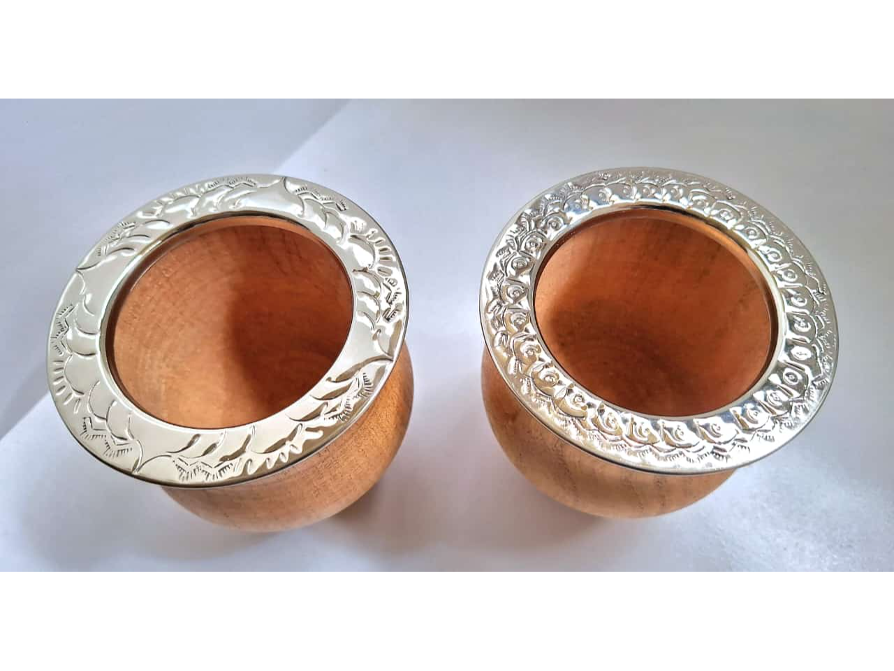 Mate de algarrobo con virola de alpaca cincelada.