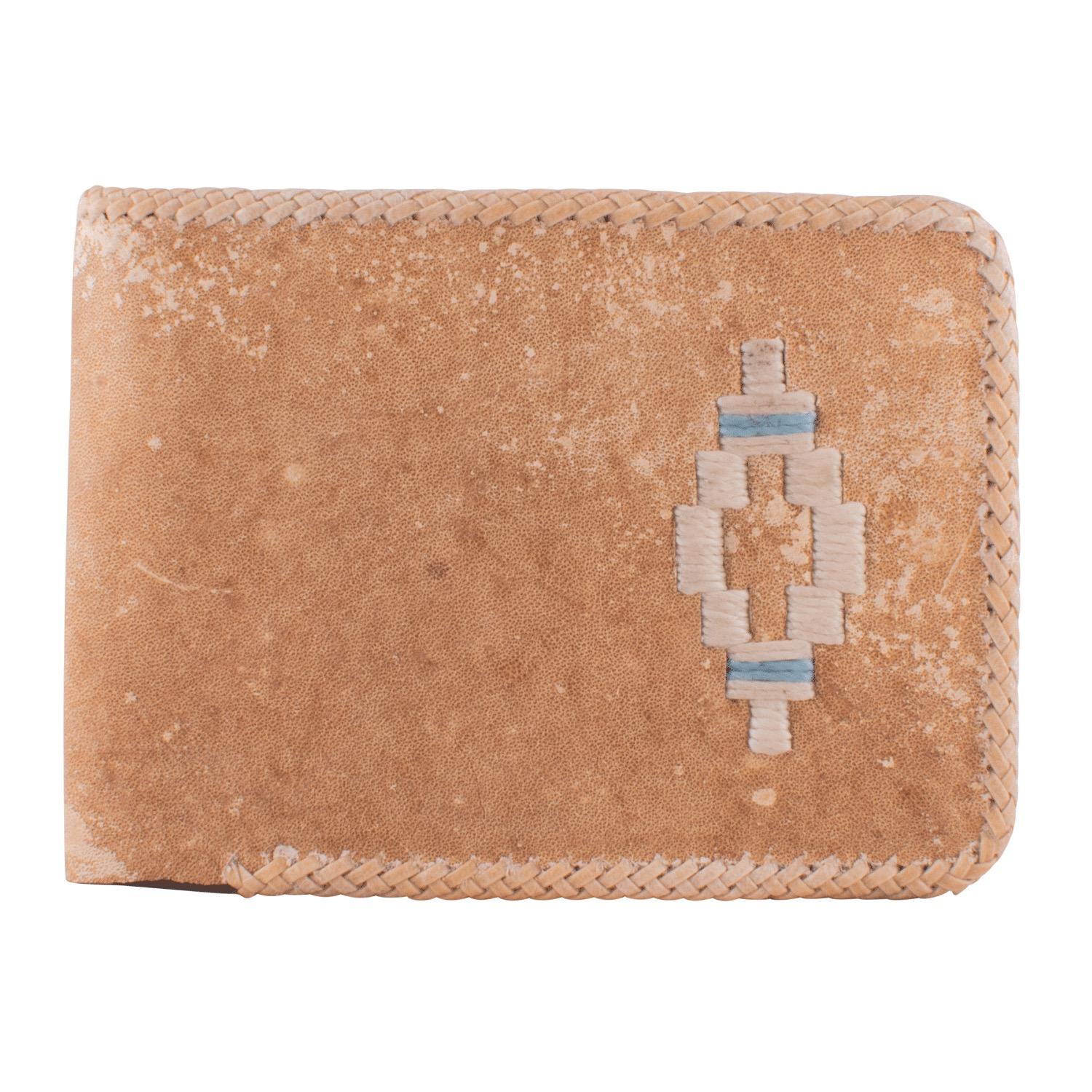 Billetera de Cuero Crudo Tejida En Tiento Y Bordada Con Hilo Encerado