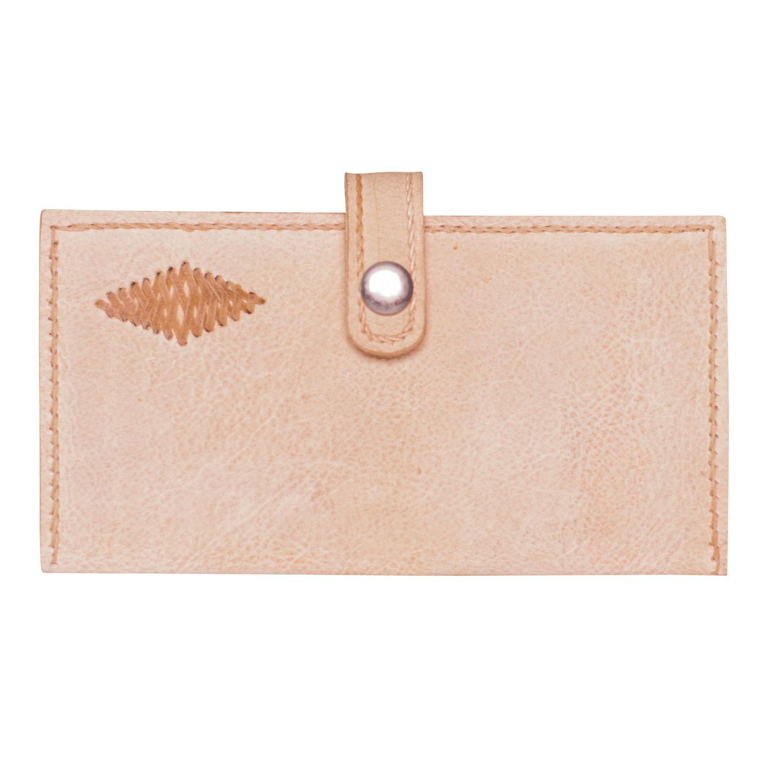 Billetera De Dama En Cuero Crudo Cosido Con Motivos Varios