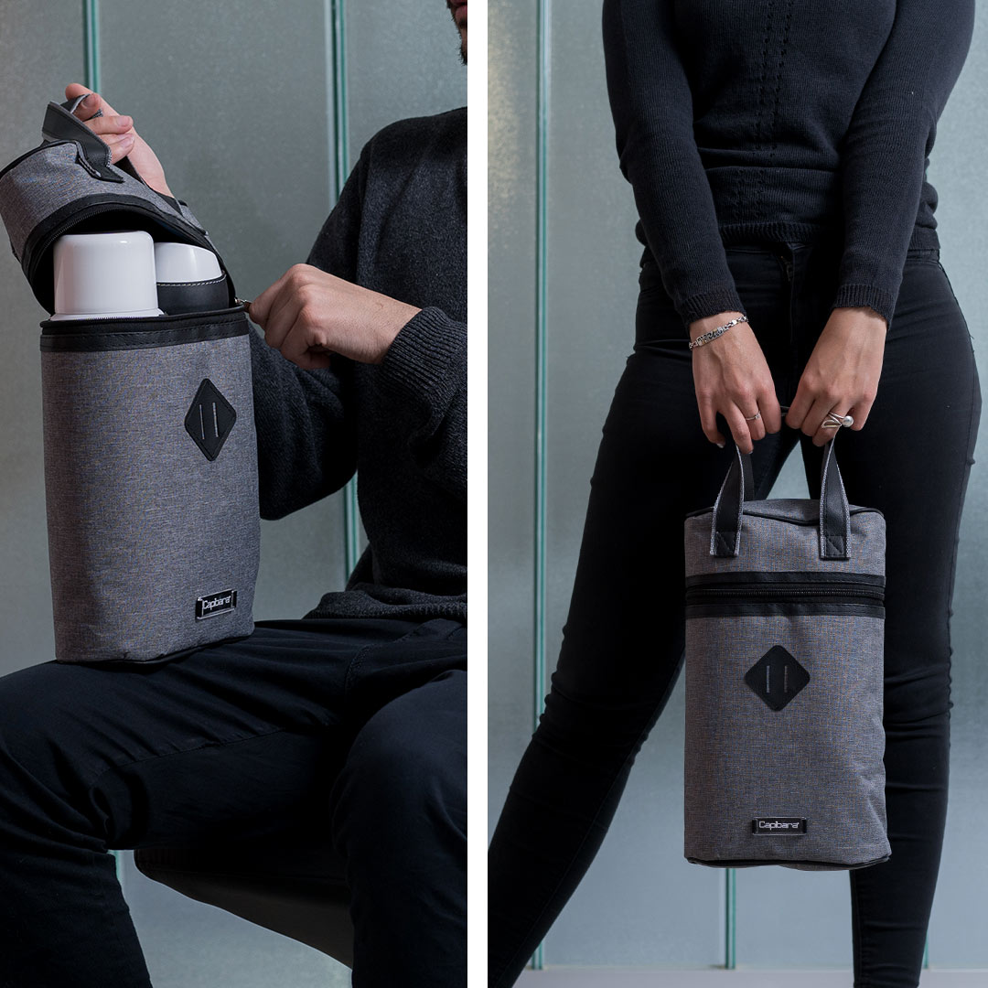 Bolso de cordura con detalles en ecocuero, reforzado con costura doble. Posee 2 manijas superiores ecocuero reforzadas con ribbon.