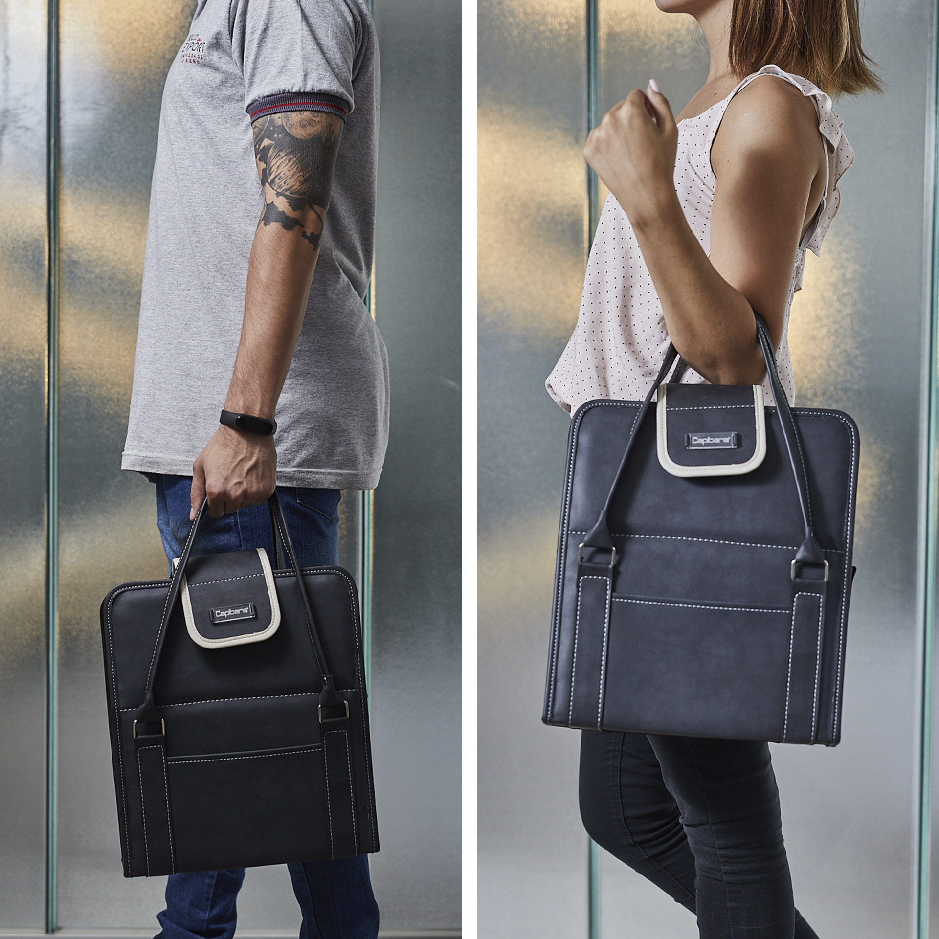 Bolso Matero de ecocuero tricapa. Reforzado con costura doble, forrado interno completo con manija superior en ecocuero reforzado y solapa con broche.