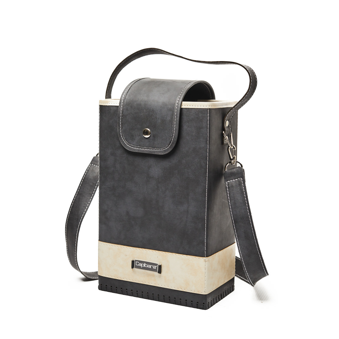 Bolso Matero de ecocuero tricapa. Reforzado con costura doble, forrado interno completo con manija superior en ecocuero reforzado y solapa con broche.