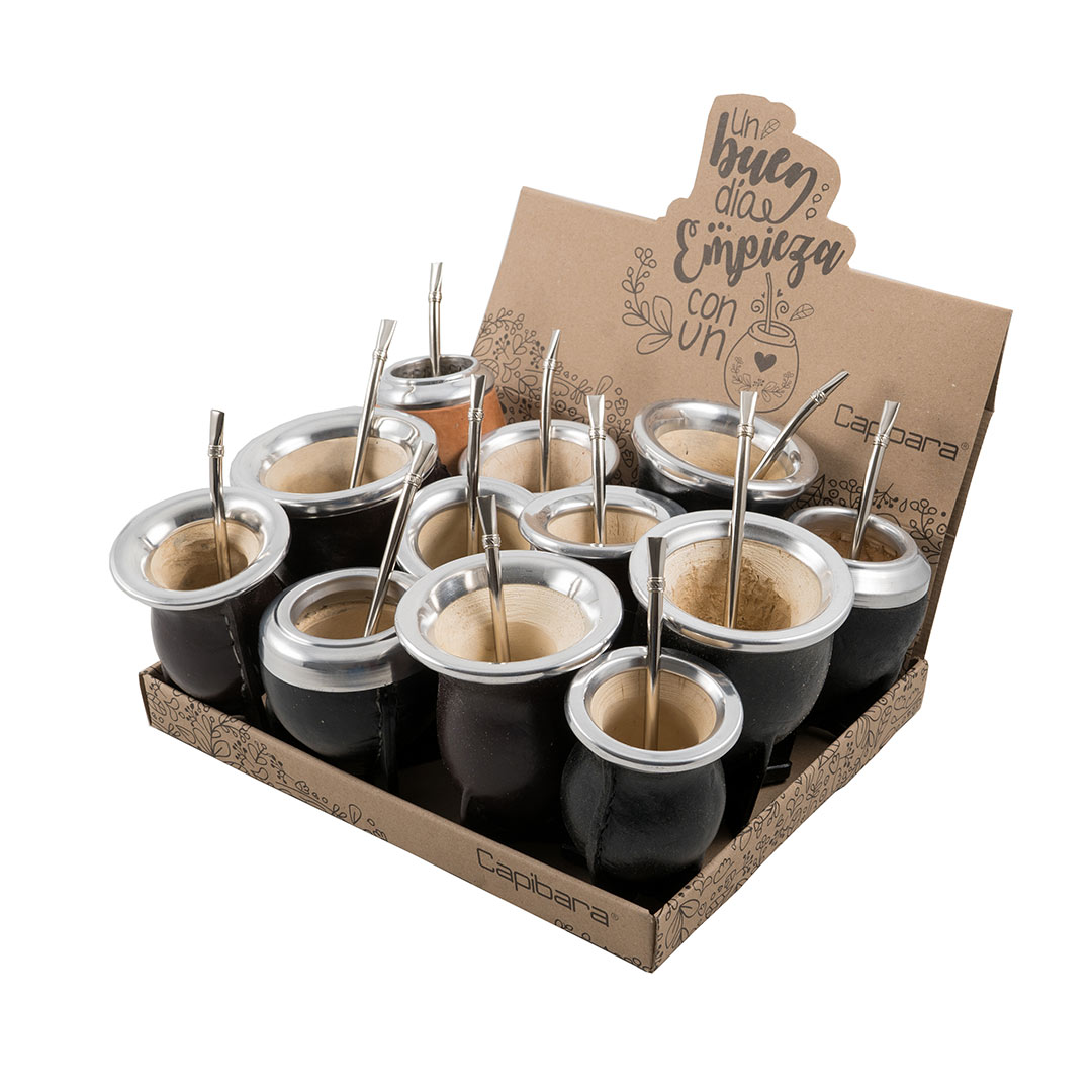 12 mates porongo forrados en cuero vaqueta. Costura reforzada.