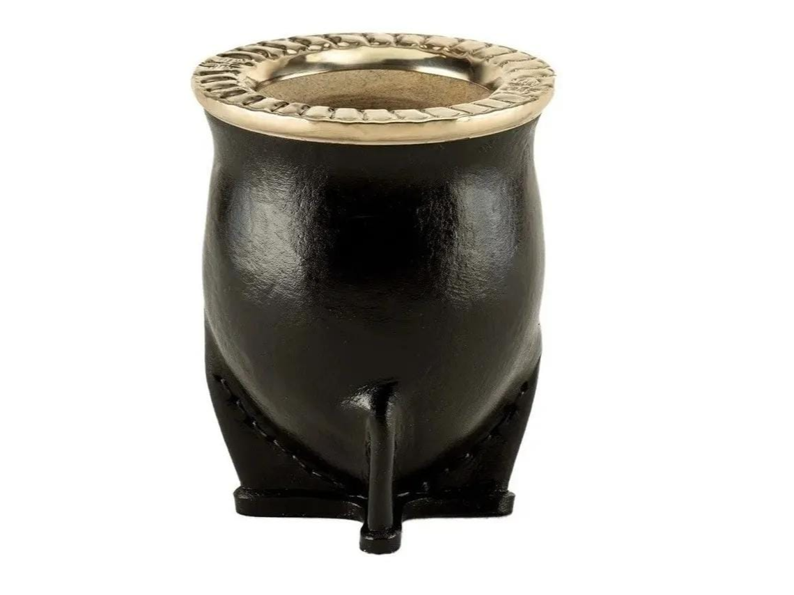 Mate de calabaza forrado en cuero, costura uruguaya! Con virola de alpaca cincelada