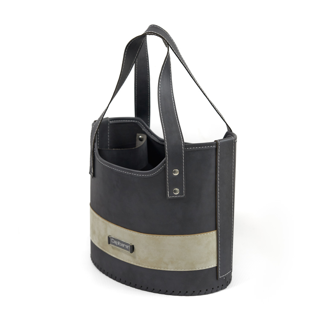 Canasta matera de ecocuero tricapa. Posee compartimiento para calzar el termo.