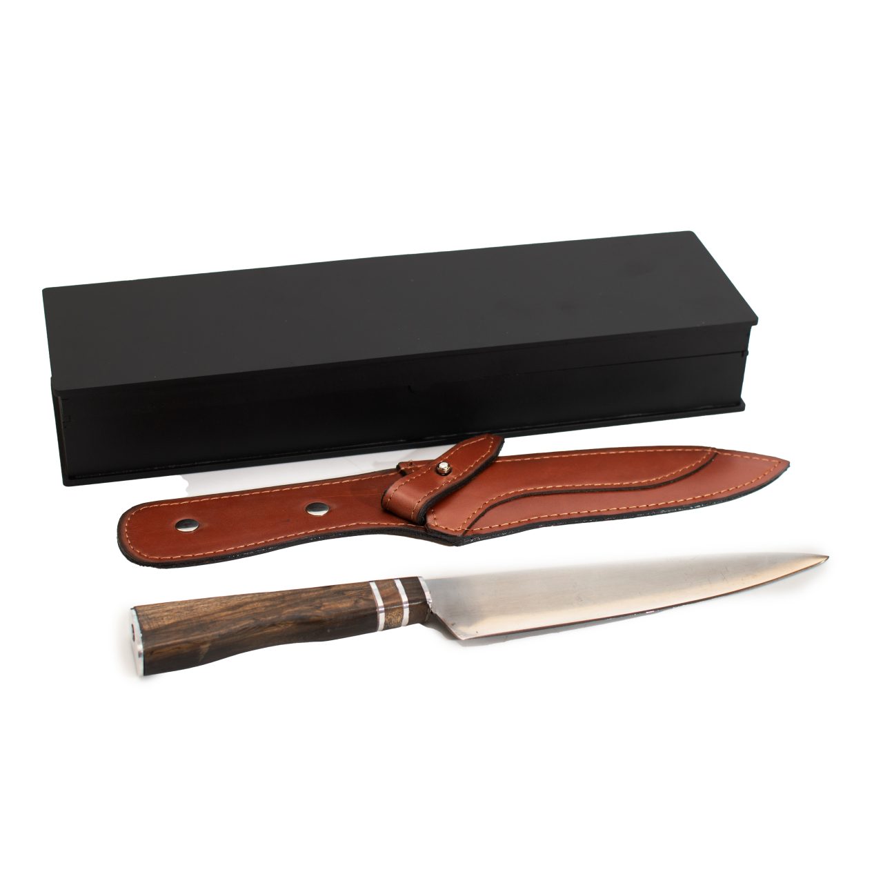 Cuchillo 3 anillos con hoja de acero quirúrgico inoxidable 420 con mango de madera de Guayubira. Hecho artesanalmente, afilado, listo para usar.