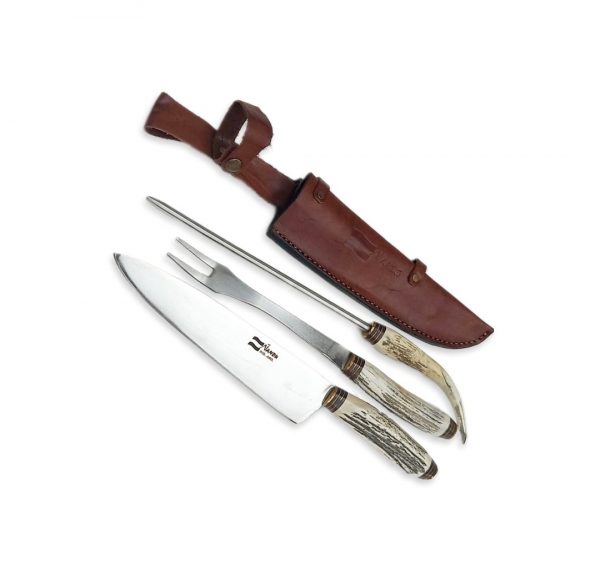 Juegos de Cuchillo, Tenedor dos pinches y Chaira, acero inoxidable 420